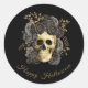 Pegatina Redonda Calavera Gótica Rosas Negras y Doradas Halloween