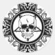 Pegatina Redonda Calavera malvada en la cruz / oscuridad / Emo