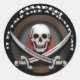 Pegatina Redonda Calavera pirata y cruces de espadas vidriosas
