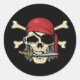Diseño de cráneo pirata y cruces. Puede personalizar de cualquiera de los textos o salir como está. Estos pegatinas son geniales para los niños fiestas por favores y cosas así.