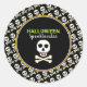 Pegatina Redonda Calavera y huesos, fiesta de Halloween en Neon