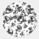 Pegatina Redonda Calaveras en Blanco y Negro Patrón de Arte de Cala