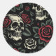 Pegatina Redonda Calaveras y Rosas Rojas Floral Gótico