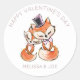 ilustración en acuarela de zorros lindos con elegante letra sans serif encerrada en círculo para tus calcomanías del día de San Valentín