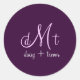 Pegatina Redonda Calcomanías de monograma lila y ciruela liso