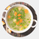 Pegatina Redonda Caldo de sopa de pollo y verduras