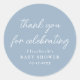 Dale a tu bebé ducha favorece un toque personalizado con este simple pegatina azul. El color y el diseño coinciden con la colección de duchas para bebés de Lea Delaveris Design, pero el color azul polvoriento y el estilo sencillo se pueden coordinar con otros muchos diseños y temas de duchas para bebés. Este lindo y simple pegatina dice "gracias por celebrar" y el texto puede ser editado para incluir nombre, fecha y más. Haz que tu ducha de bebé y la celebración de tu futura mamá sean especiales con este lindo pegatina azul claro.