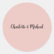 Pegatina Redonda Caligrafía boda Elegante Rosa Nombre de la Llanura