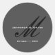 Pegatina Redonda Caligrafía clásica Monograma Boda Gris