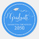 Pegatina Redonda Caligrafía de graduación Guión Elegante Azul Cap