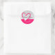 Pegatina Redonda Caligrafía del corazón rosado de las gotas blancas