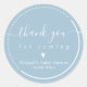 Pegatina Redonda Caligrafía elegante azul para baby shower 'Gracias