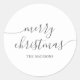 Pegatina Redonda Caligrafía Minimalista Feliz Navidad Blanco