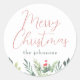 Pegatina Redonda Caligrafía navideña y verde de nombre familiar