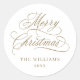 Pegatina Redonda Caligrafía romántica Feliz Navidad Oro y Blanco