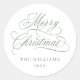 Pegatina Redonda Caligrafía romántica Feliz Navidad Sage sedoso