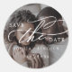 Pegatina Redonda Caligrafía romántica Foto oscura Guardar la fecha