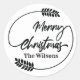 Pegatina Redonda Calligrafía Feliz Navidad corona botánica