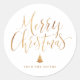Pegatina Redonda Calligrafía simple dorada Feliz Navidad