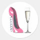 Pegatina Redonda Calzado de Stiletto y vidrio de champán rosado