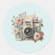 Pegatina Redonda Camera with Flowers Retro Pastel Image