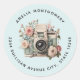 Pegatina Redonda Camera with Flowers Retro Pastel Image - Address