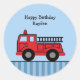 Pegatina Redonda Camión de bomberos personalizado niño de cumpleaño