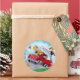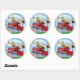 Pegatina Redonda Camión de bomberos rojo con bomberos niños lindos