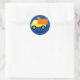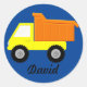 Pegatina Redonda Camión De Juguete Amarillo Sobre Azul