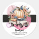 Pegatina Redonda Camión floral negro de calabaza rosada Baby Shower