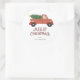 Pegatina Redonda Camión rojo con Navidades modernos de árbol de Nav