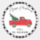 Pegatina Redonda Camión rojo personalizado con pintura de árbol