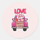 Pegatina Redonda Camión Rosa Adorable del Día de San Valentín "Te A