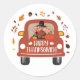Nuestra etiqueta de Acción de Gracias es perfecta para sellos para sobres o para añadir a sus actividades del día de Acción de Gracias. Pegatina Feliz Día de Acción de Gracias con las palabras "Feliz Día de Acción de Gracias" y la linda Turquía en un camión. Ver toda nuestra decoración de vacaciones en nuestra tienda Zazzle!