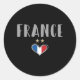 Pegatina Redonda Camisa de hincha de fútbol de Francia con corazón