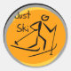 Si tu deporte de elección es el esquí, te encantarán nuestras camisetas de diseño Just Ski, tazas, caramelos, bolsos de té, tarjetas, pegatinas, botones de esquí, imanes y otras prendas de esquí y regalos con un esquiador de silueta negra en una circular naranja y texto que dice "¡Esquiar solamente!