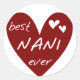 ¡Las mejores camisetas Nani Ever, caramelos, bolsos de té, imanes, tarjetas, tazas, bolsitas, ornamentos y mucho más para el mejor nani que jamás tenga un corazón rojo y un diseño de texto blanco! ¡Grandes regalos para los bisabuelos!