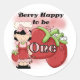 Tema de fresa Camisetas de primer cumpleaños, trajes para el cuerpo, tazas, tarjetas, pegatinas de cumpleaños, imanes y más con un lindo chica de pelo negro y tema de fresa.
