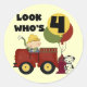 Pegatina Redonda Camisetas y regalos de cumpleaños de Fireman 4th