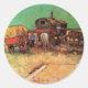 Pegatina Redonda Campamento de gitanos con caravanas, Van Gogh