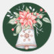 Pegatina Redonda Campana de Navidades pasteles con poinsettia