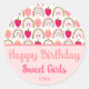 Celebre sus alegres ocasiones con este encantador Pegatina redondo adornado con fresas vibrantes, arcos de lluvia radiantes y coloridas flores rosadas. Perfecto para añadir un toque caprichoso a tus regalos y difundir alegría.