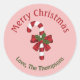 Pegatina Redonda Caña De Vela Roja Y Blanca Con Feliz Texto De Navi