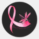 Pegatina Redonda Cáncer de mama de Cinta Rosa Hippie Dragonfly