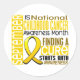 El Mes de Concienciación sobre el Cáncer Infantil es septiembre. Recuerden a otros que setiembre es el Mes de Concienciación sobre el Cáncer Infantil mientras envían un mensaje de que encontrar una cura comienza con la conciencia con camisetas y regalos audaces con conocimiento del cáncer infantil, que incluyen una cinta dorada de apoyo al cáncer infantil y una mezcla de letras y tamaños en tonos de oro y negro. Ideal para compartir un recordatorio importante mientras muestra tu espíritu de cinta dorada para la conciencia del cáncer infantil y el Mes de Concienciación sobre el Cáncer Infantil. Contribuimos regularmente a las organizaciones benéficas de salud, animales y Darfur.