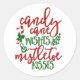 Candy Cane desea a Mistletoe Kisses Navidades Pegatina redondo clásico