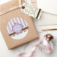 Pegatina redonda con un diseño original que combina armoniosamente rayas de lavanda con puntos de polka, proporcionando un lienzo versátil para que pueda mostrar su nombre de empresa o su lema.