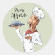 Un chef de canto con bigotes presenta una obra de arte culinaria con el texto "Buon Appetito". Puede editar el texto como desee.