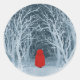 Pequeña Caperucita Roja en un invierno nevado caminando por el bosque. ¿Puedes ver al Gran Lobo Malo aullando a la distancia? Una versión borrosa de una pintura acuarela negativa. Me encantaría ver mi diseño en el mundo - etiquetarme en IG @parry_vegan.