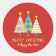 Pegatina Redonda Caprichoso Rojo Feliz Navidad